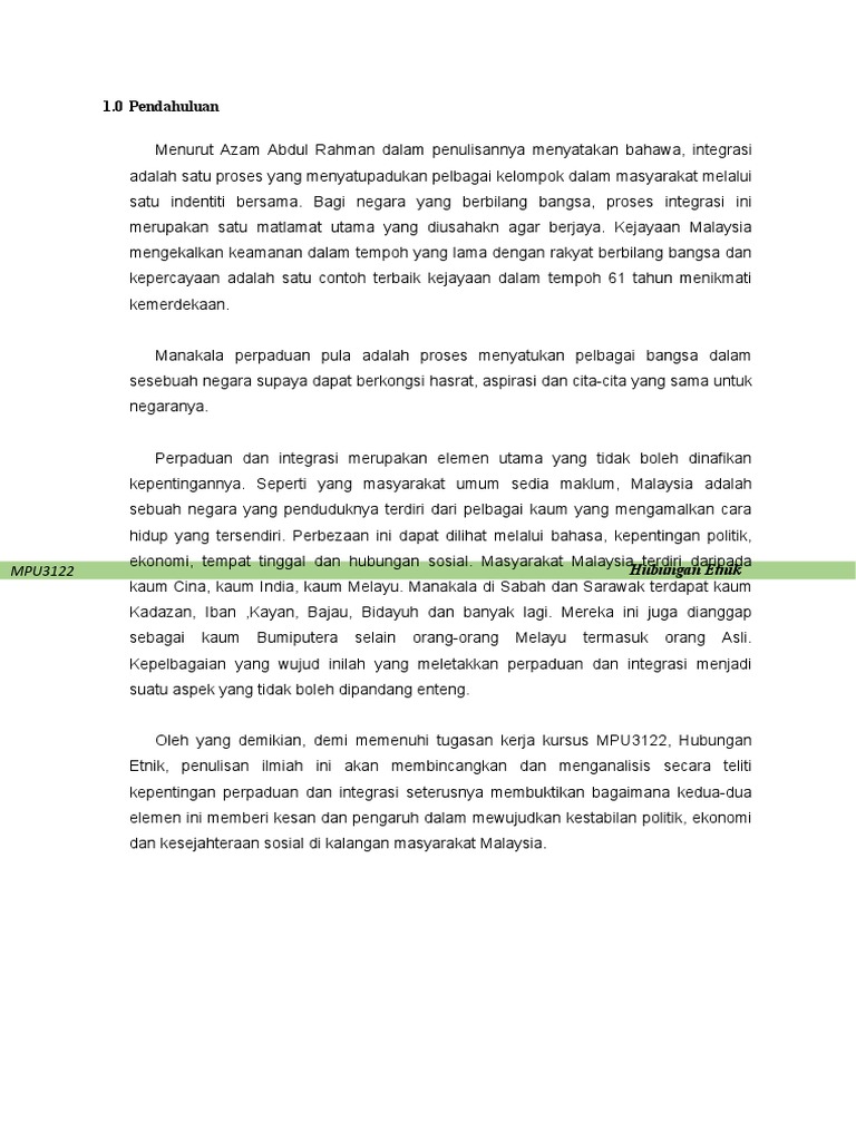 Peristiwa tersebut telah menimbulkan satu titik hitam dalam sejarah negara kita. Katakan, seorang pemuda dari etnik jawa, misalnya mau menikah dengan gadis dari salah satu etnik batak. 2.0 tahap hubungan etnik tahap pertama: Pengalaman malaysia negara lain menjadikan malaysia sebagai contoh dari segi skim rondaan sukarela (srs) adalah satu cabang di dalam rukun tetangga. Integrasi adalah suatu proses yang kompleks.
