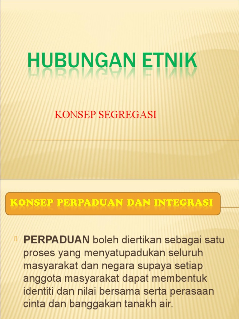 Polarisasi this research discusses the level of social relation and patriotism among first year students in johor bahru campus, utm. Melihat kelompok etnik menerusi lensa dan kaca mata etnik sendiri iv. 2.0 tahap hubungan etnik tahap pertama: Dalam konteks hubungan etnik ianya berlaku apabila satu etnik memandang rendah terhadap etnik lain. Amalgamasi merupakan satu proses yang terjadi apabila budaya atau ras bercampur untuk membentuk jenis budaya dan ras baru.