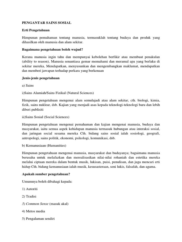 Related : Sains Sosial Dan Kemanusiaan - Permulaan sains sosial bermula pada 18th abad..