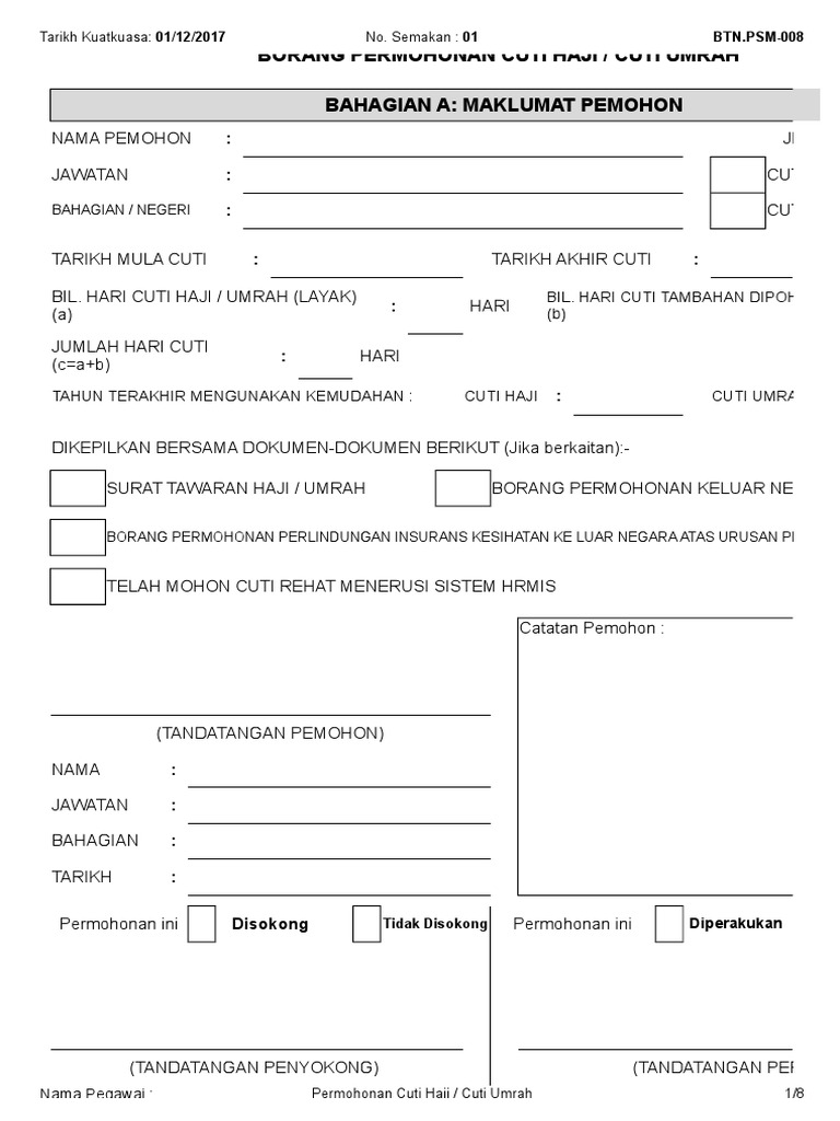 Borang Cuti Umrah 2018 : Pekeliling Perkhidmatan Bilangan Jabatan Perkhidmatan Awam ÙÙØ³Ø¨ÙÙ / Sekiranya tempoh cuti umrah yang digunakan adalah kurang daripada tujuh (7) hari, baki cuti yang tidak digunakan tidak boleh dibawa ke hadapan